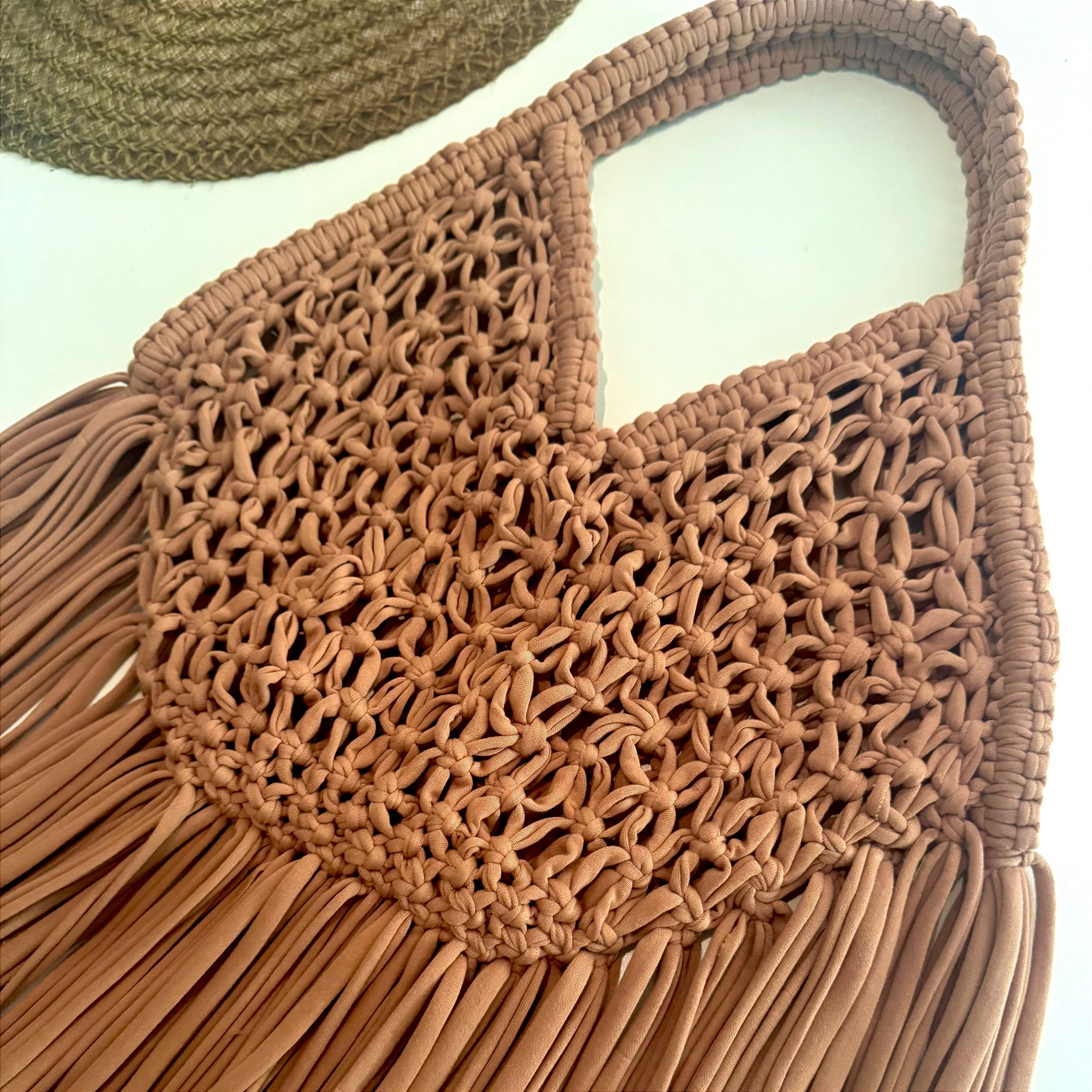 A Bolsa Itacaré é a expressão da liberdade em forma de acessório. Feita à mão em macramê com fios de malha, ela combina textura e movimento em cada detalhe. Suas franjas longas trazem leveza e um charme natural que remete ao vento e ao mar do litoral baiano.